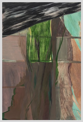 Nelson has long explored ways to open up the presumptive flat plane of the canvas. Using layers of paint and rhythmic brush marks Nelson constructs multi planar sites where the boundaries between body & landscape and abstraction & figuration are porous and ever-changing. Each painting contains a complex system of gesture which reveals traces of the artist’s movements while inviting viewers to place themselves in the action. This manifests in spectrums of broad strokes of color and networks of delicate line work. A single mark can simultaneously evoke multiple bodily references – arm is also leg, and the profile of a face doubles as butt cheeks, depending on perspective.